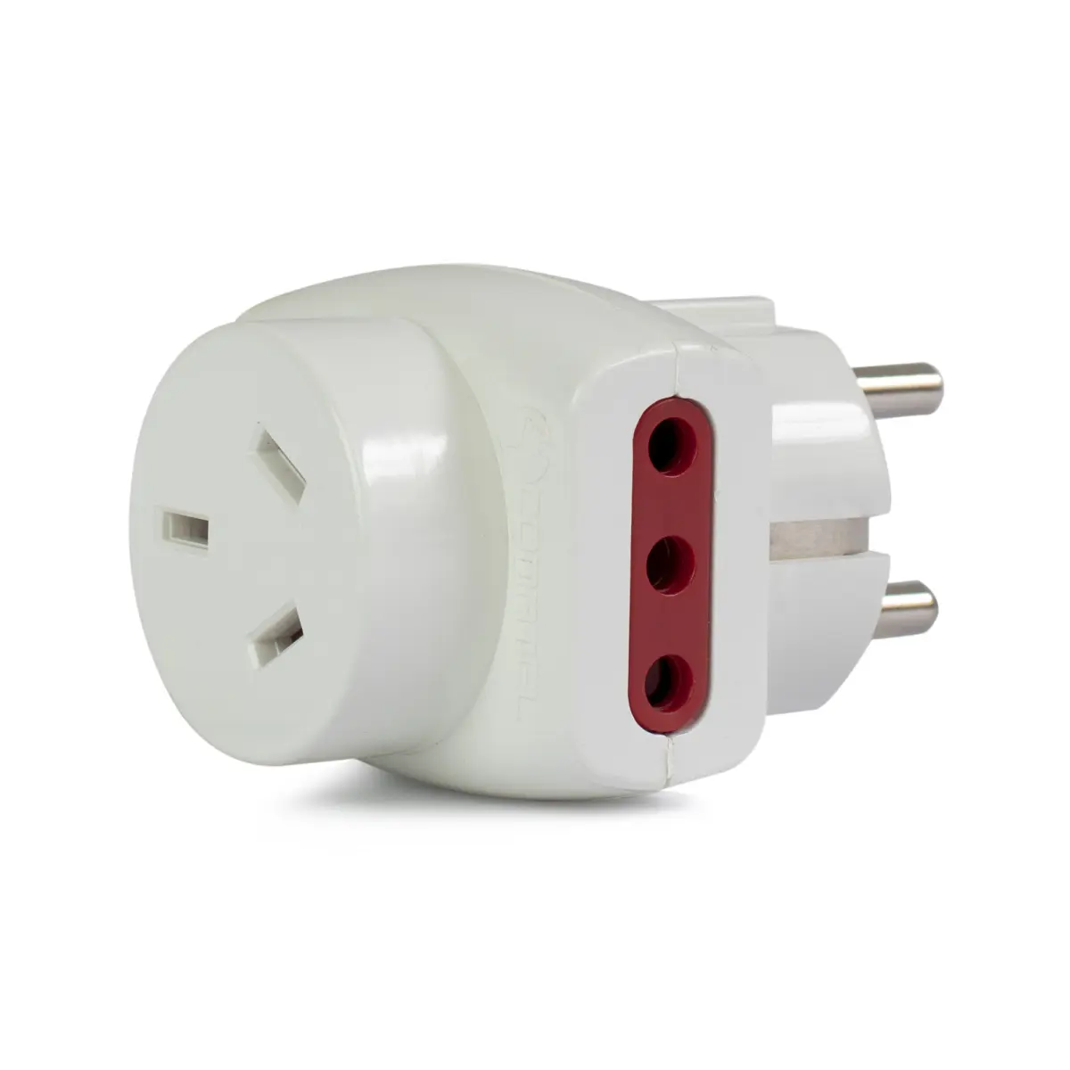 Adaptador nema + 2 tres en linea a Schuko.